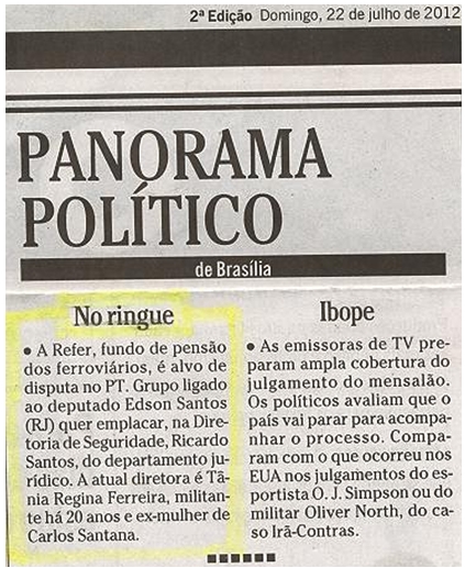 coluna “Panorama Político” do jornal O Globo – 2ª edição, 22 de julho de