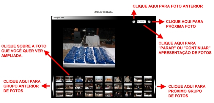 FESTA DO 31º ANIVERSÁRIO DE FUNDAÇÃO DA AARFFSA VEJA ABAIXO A GALERIA DE FOTOS DA FESTA QUE CONTOU COM A PRESENÇA DAS PRINCIPAIS AUTORIDADES FERROVIÁRIAS, PARCEIROS E CONVENIADOS. DESTACAMOS A POSSE DA DIRETORA SOCIAL LIDIA MARIA MARTINS GONÇALVES NO CARGO DE VICE-PRESIDENTE DA AARFFSA, EM SUBSTITUIÇÃO AO EX VICE-PRESIDENTE FERNANDO JOÃO ABELHA SALLES. ABAIXO APRESENTAMOS O ESQUEMA DE COMO UTILIZAR OS CONTROLES DA GALERIA DE FOTOS NO SITE DA A.A.R.F.F.S.A.